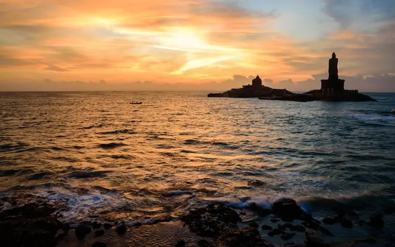 At India’s southern tip, Kanyakumari provides one of the most unique vantage points in Asia — sunrise over the Bay of Bengal and sunset over the Arabian Sea, all from one location.