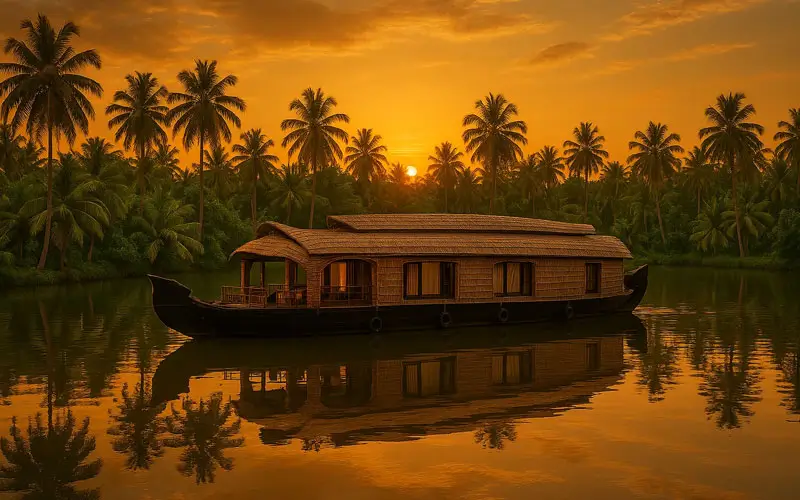 At sunset, hues shift to deep crimson and violet, mirrored on ripples as fishermen return home. Staying overnight on a private Kerala houseboat allows photographers to shoot from deck during both golden hours — a tranquil masterpiece of southern India photography.