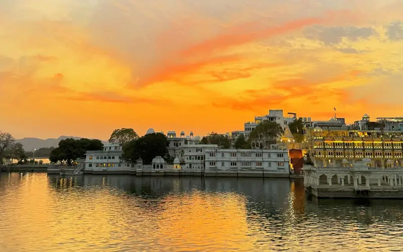For sunsets, Ambrai Ghat delivers a breathtaking panorama: the lake glowing orange, boats drifting, and palaces sparkling like jewels. From rooftops like The Sunset Terrace or Karni Mata Temple viewpoint, you can frame wide aerial compositions that define romantic Udaipur photography.