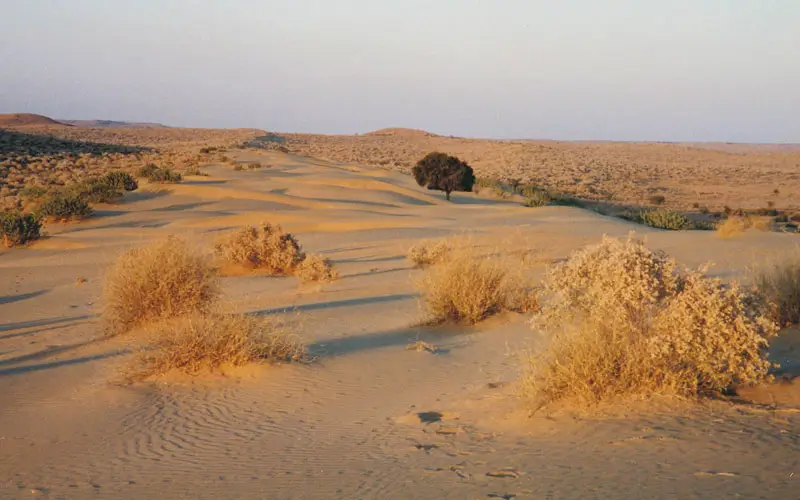 While the Sam Sand Dunes near Jaisalmer echo with tourists and jeeps, Khuri Village remains peaceful and authentic. Here, the desert whispers rather than shouts.