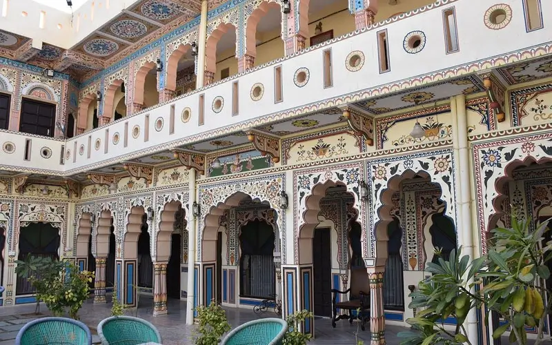 In the Shekhawati region of northern Rajasthan lies Mandawa, a town that feels like an artist’s canvas. Every haveli wall tells a story — mythological murals, royal portraits, and British-era paintings that reflect the region’s trade legacy.